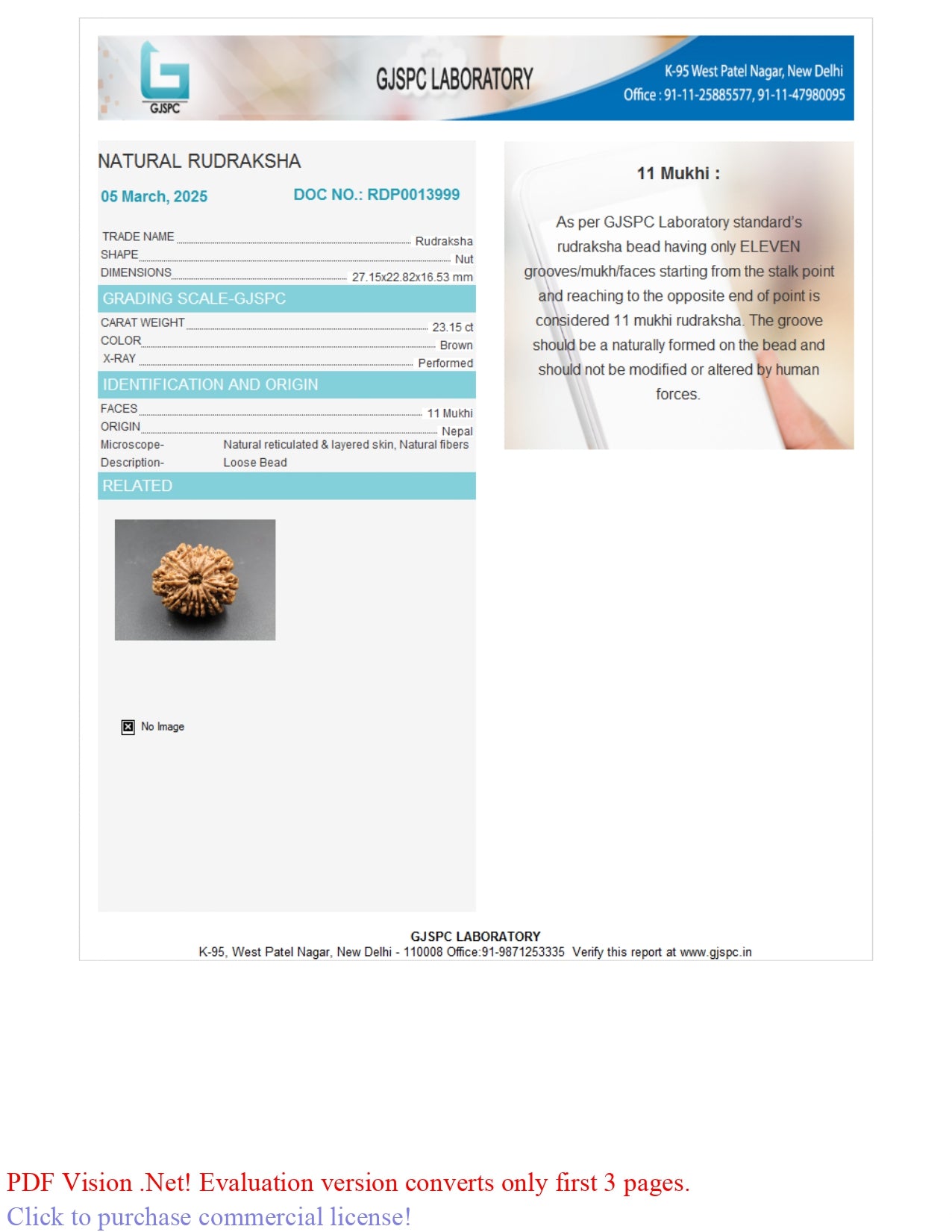 from Buy 100% original & lab-certified with Xray report, 11-Faces / eleven Mukhi Rudraksha (27.15 mm) online at the best price from trusted Brahma Gems. All 11 Mukhi Rudraksha are genuine and imported Nepal origin.