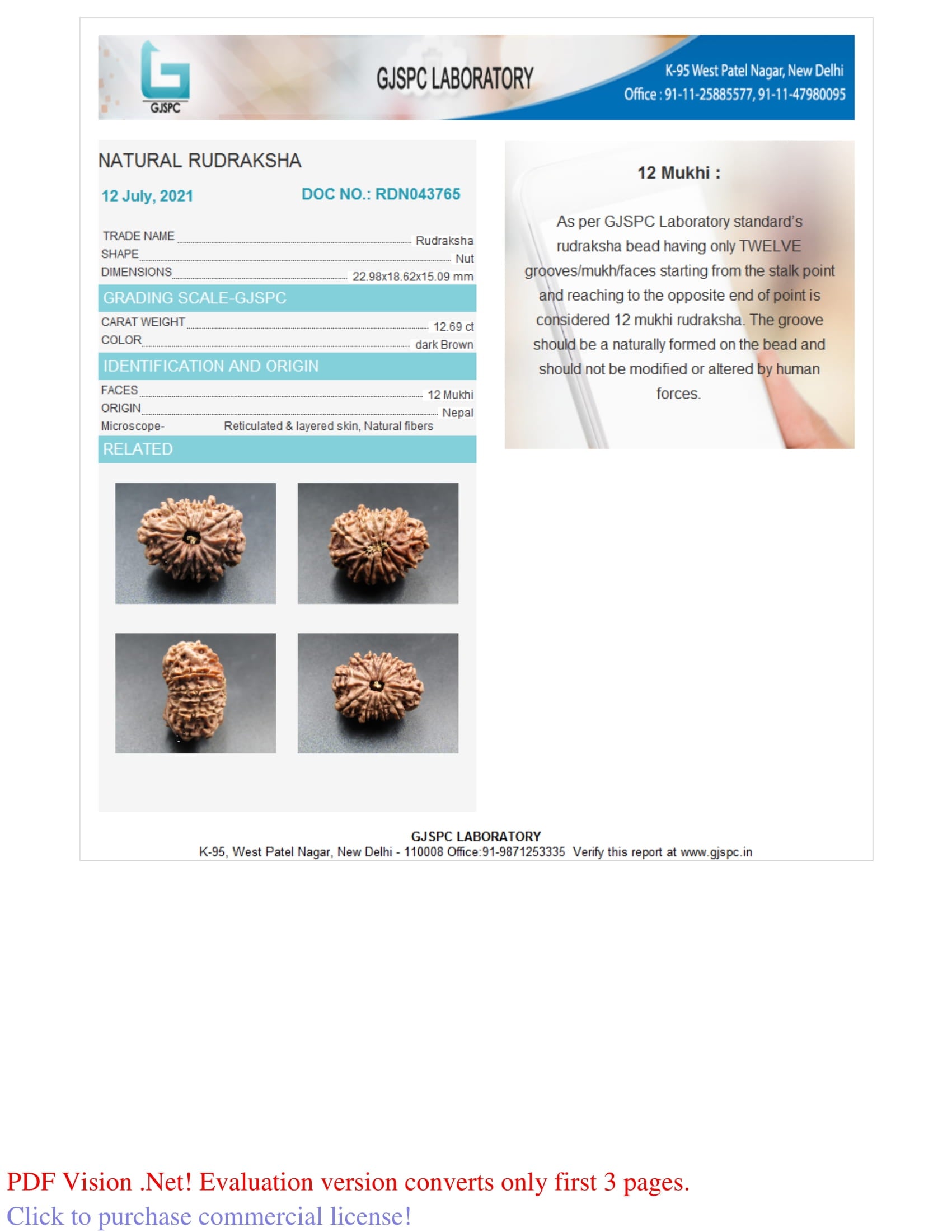Buy 100% original & lab-certified with Xray report, 12-Faces / Twelve Mukhi Rudraksha (22.98 mm) online at the best price from trusted Brahma Gems. All 12 Mukhi Rudraksha are genuine and imported from Nepal origin.