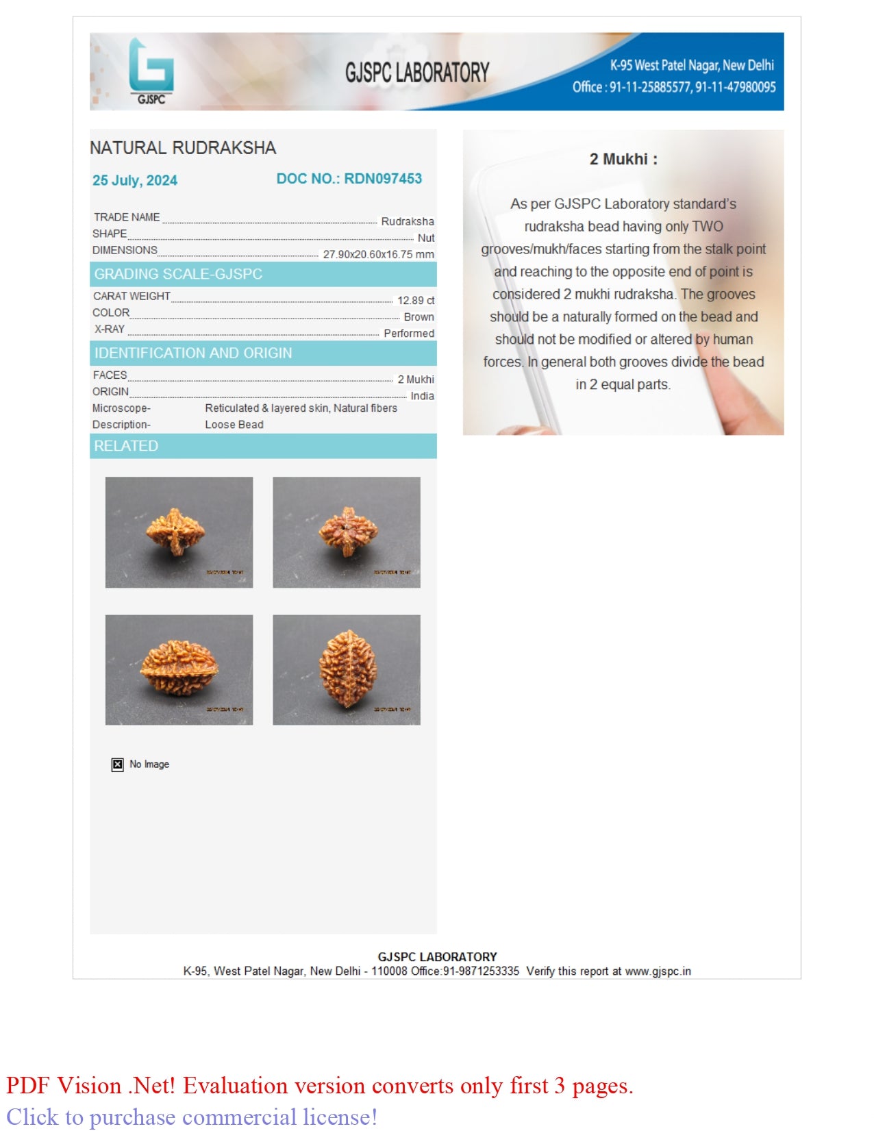 Buy 100% original and lab-certified with Xray report 2 Mukhi / 2 Faces Rudraksha (27.90 mm) online at the best price from trusted Brahma Gems. All 2 Mukhi Rudraksha are 100% genuine from India origin.