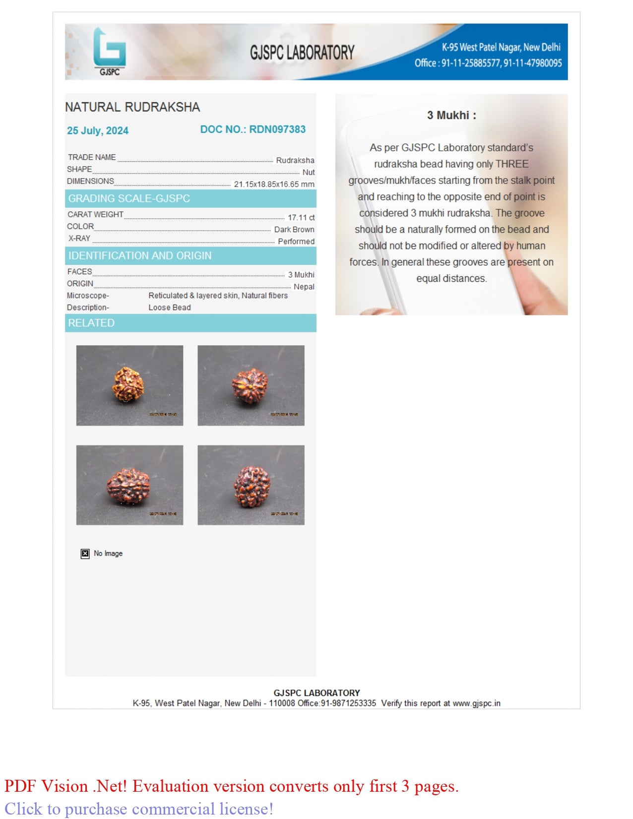 Buy 100% original and lab-certified with Xray report 3 Mukhi / 3 Faces Rudraksha (21.15 mm) online at the best price from trusted Brahma Gems. All 3 Mukhi Rudraksha are 100% genuine from Nepal origin.