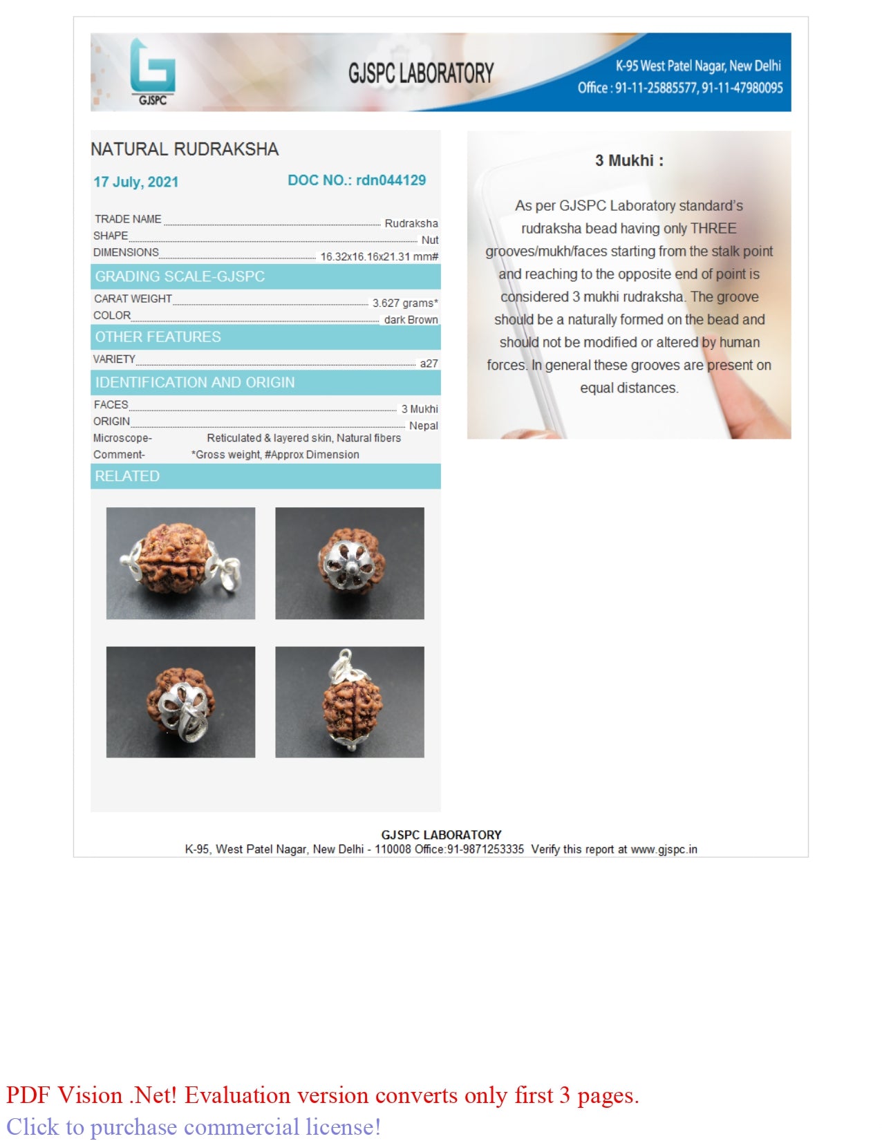 Buy 100% original and lab-certified with Xray report 3 Mukhi / 3 Faces Rudraksha (21.31 mm) online at the best price from trusted Brahma Gems. All 3 Mukhi Rudraksha are 100% genuine from Nepal origin.