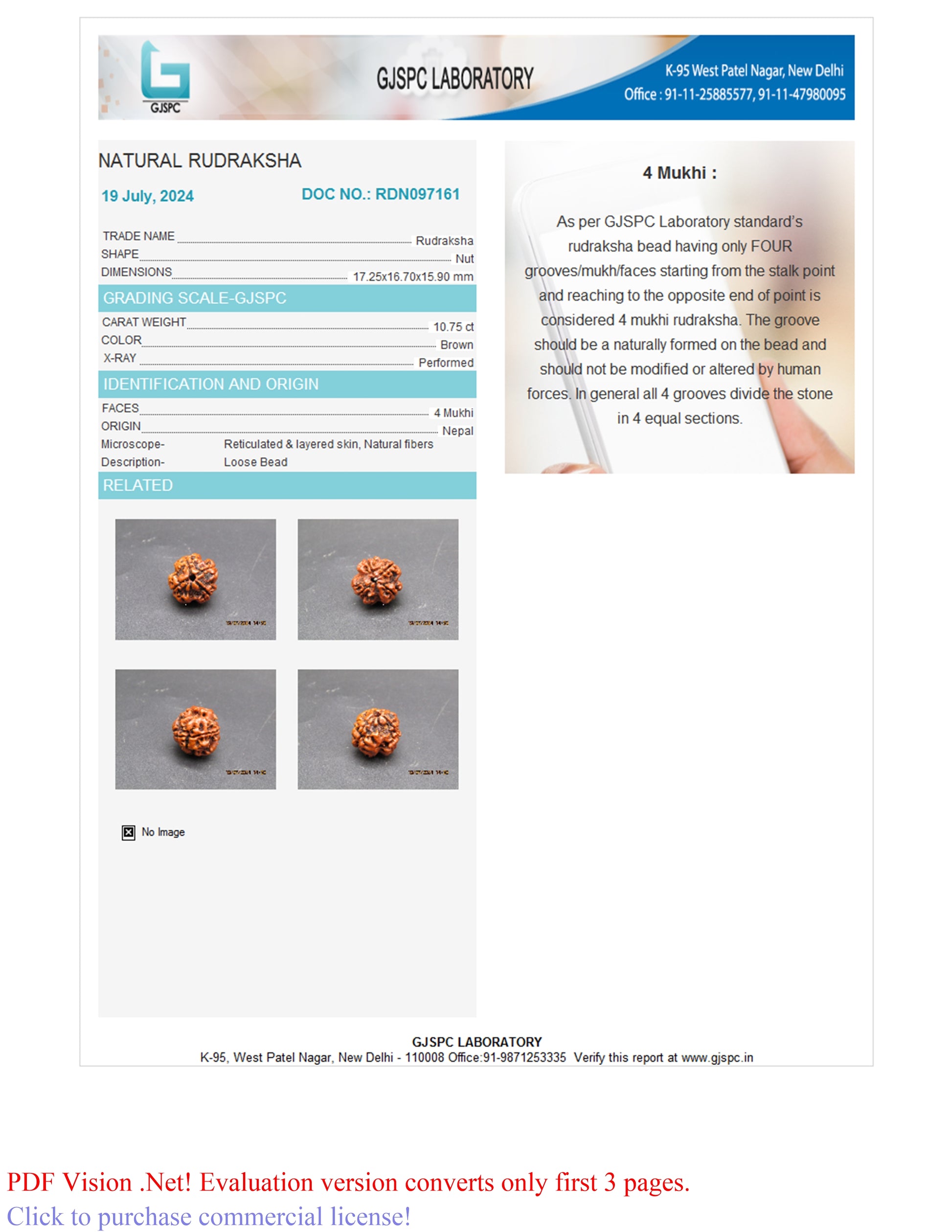 Buy 100% pure & lab-certified with Xray report Four Mukhi / 4 Faces Rudraksha (17.25 mm) online at the best price from trusted Brahma Gems. All 4 Mukhi nepali Rudraksha are 100% genuine and imported from Nepal origin.