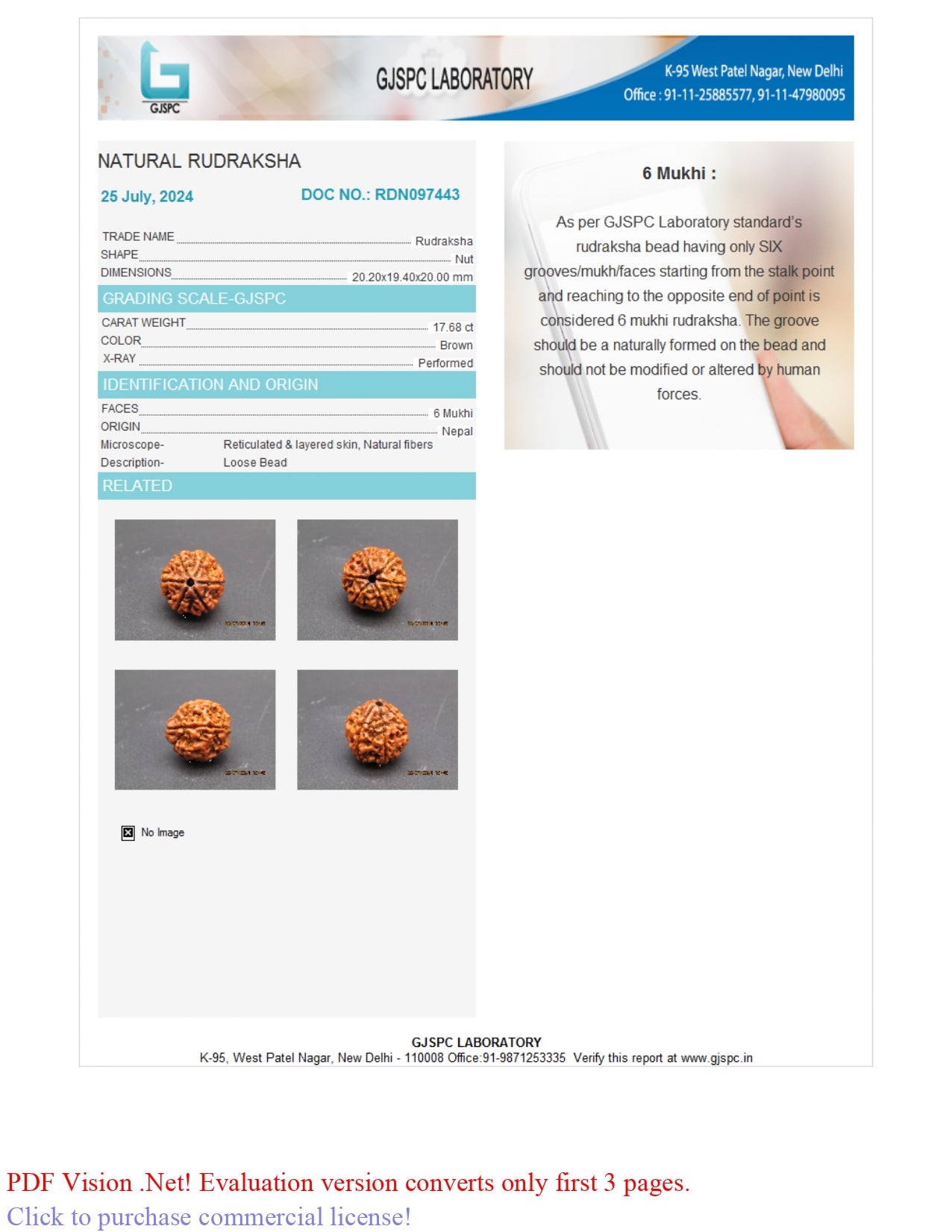 Buy 100% original and lab-certified with Xray report 6 Mukhi / 6 Faces Rudraksha (20.20 mm) online at the best price from trusted Brahma Gems. All 6 Mukhi Rudraksha are 100% genuine from Nepal origin.